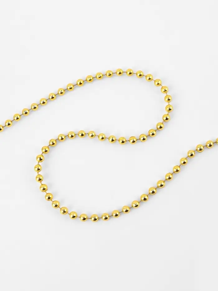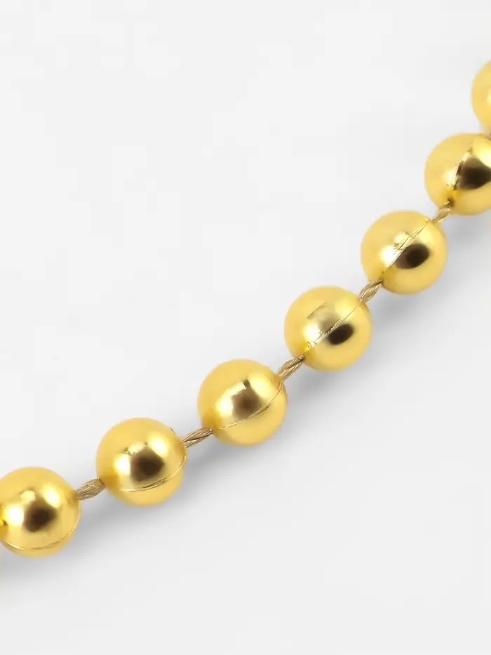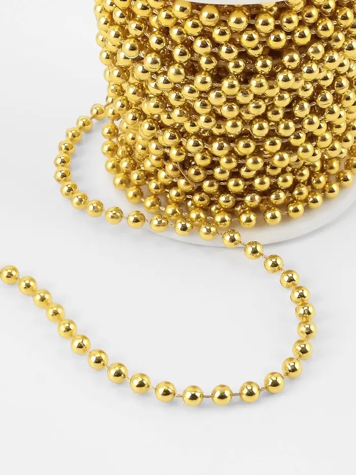 Эти изящные золотистые бусины на нитях — идеальный способ добавить праздничного сияния в ваш интерьер. Их универсальность позволяет использовать их для декора новогодней ёлки, создания гирлянд или оформления праздничного стола. Каждая бусина диаметром 4 мм аккуратно закреплена на прочной нити, образуя мерцающий поток длиной около 9 метров.