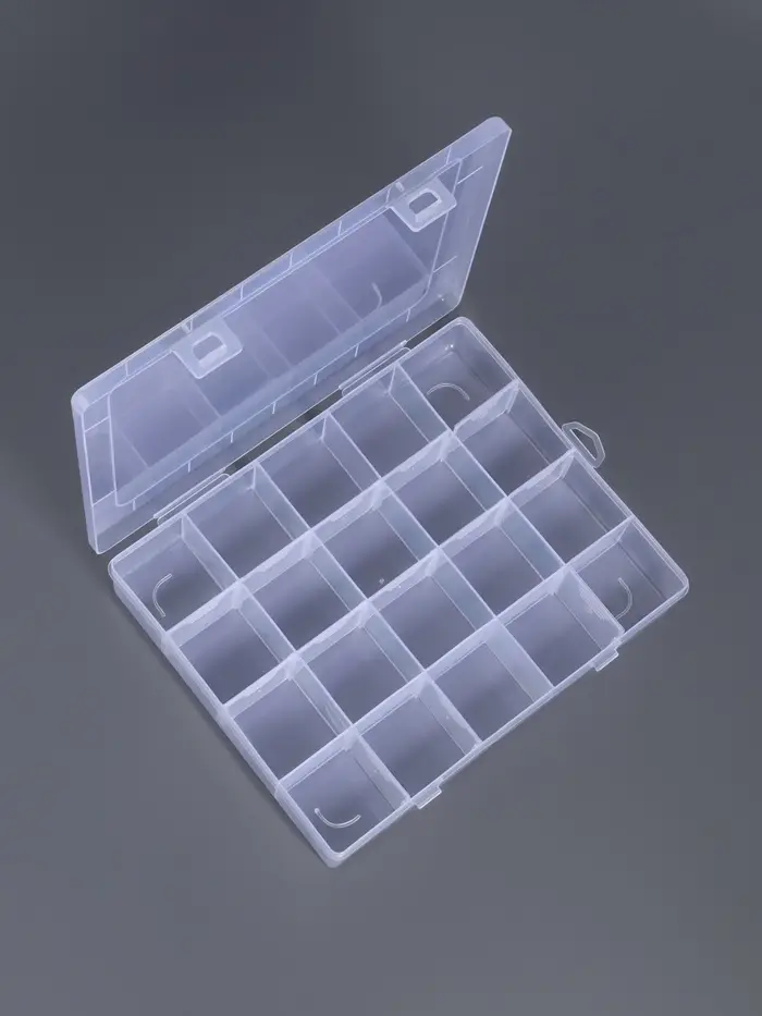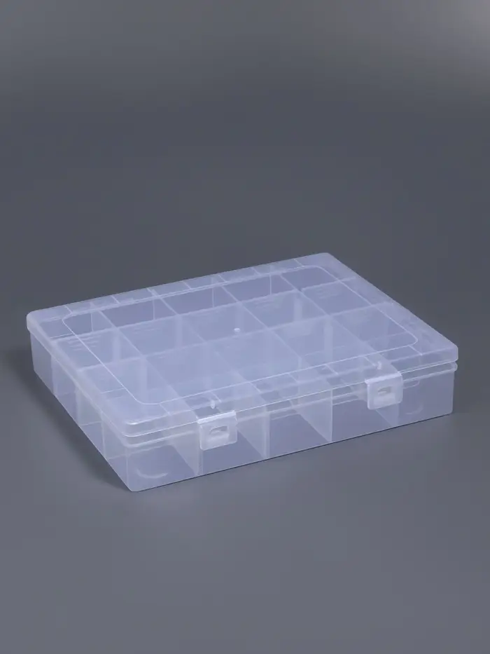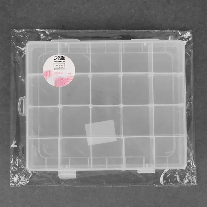 Этот прозрачный органайзер с передвижными ячейками предназначен для аккуратного хранения домашних мелочей и декоративных элементов. Благодаря 20 секциям, он позволяет легко организовать стразы, украшения, миниатюрные детали и другие мелкие предметы. Размеры 20,8×17,5×4 см делают его компактным решением для дома, мастерской или студии творчества.