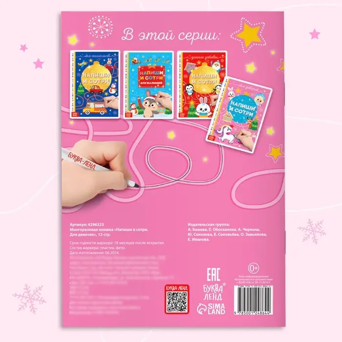 Многоразовая книжка «Пиши-спирай» предназначена для маленьких настоящих леди. Девочки с удовольствием будут выполнять увлекательные задания, которые создадут волшебное новогоднее настроение.