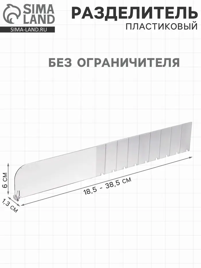Пластиковый разделитель без ограничителя, 18.5-38.5×1.3×6 см, прозрачный