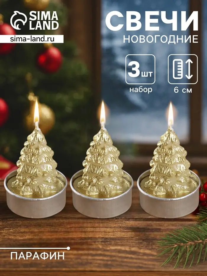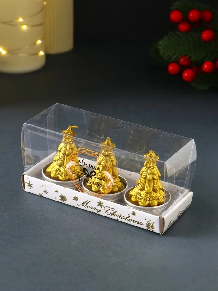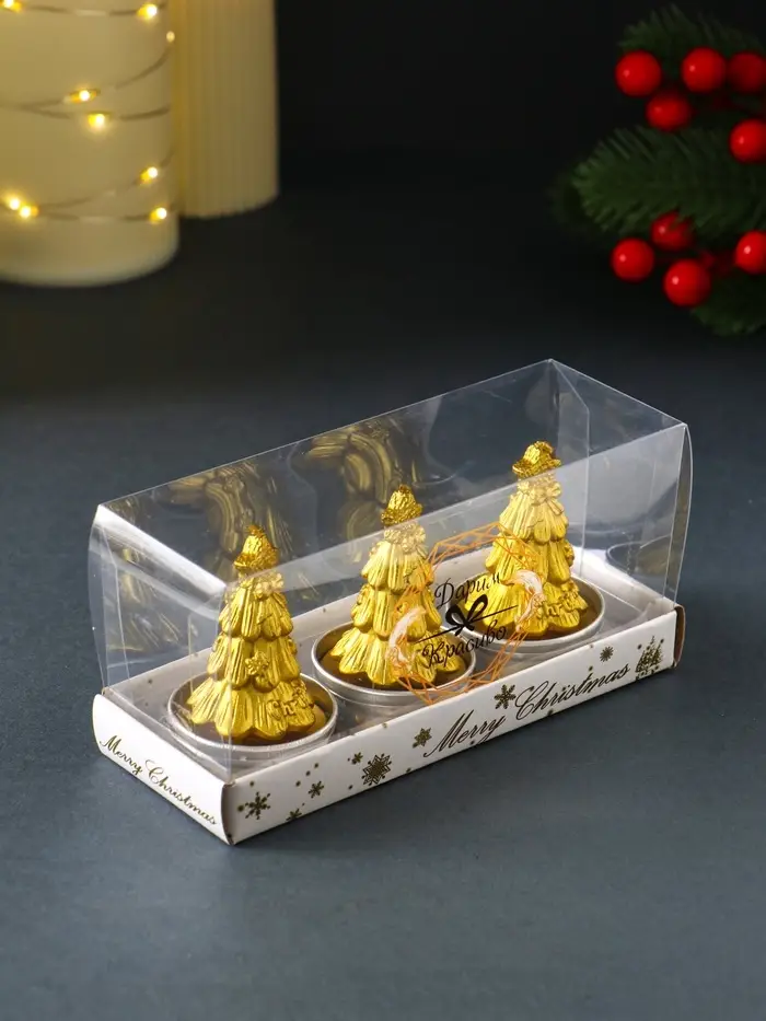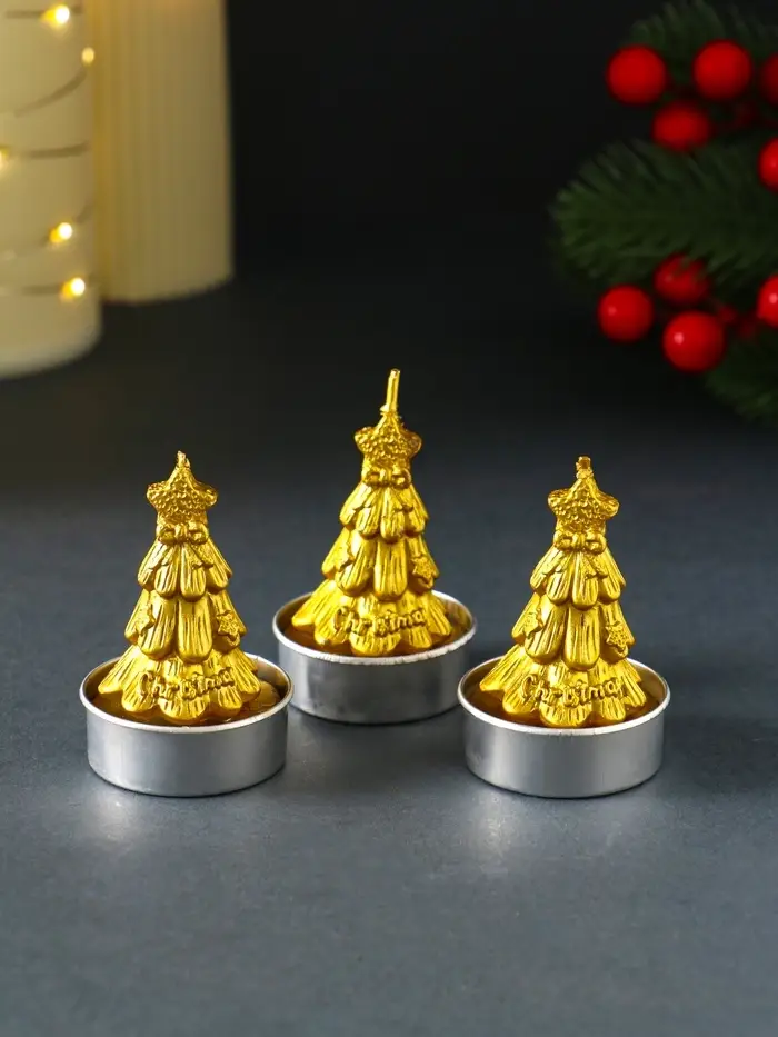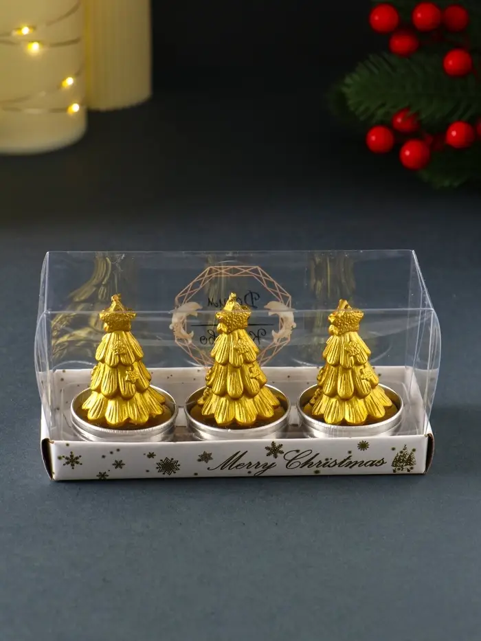 Набор свечей новогодних «Ёлка золотая», 3 шт., 4×6 см