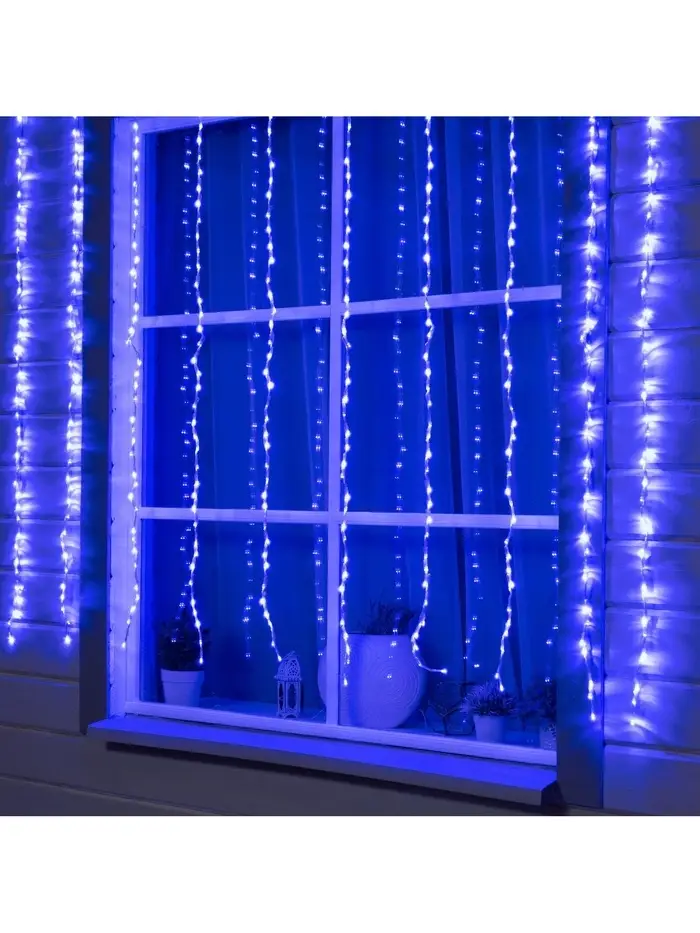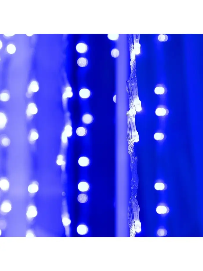 Гирлянда «Водопад» 2×1.5 м, IP44, прозрачная нить, 400 LED, свечение синее, 8 комбинаций режимов, 220 В