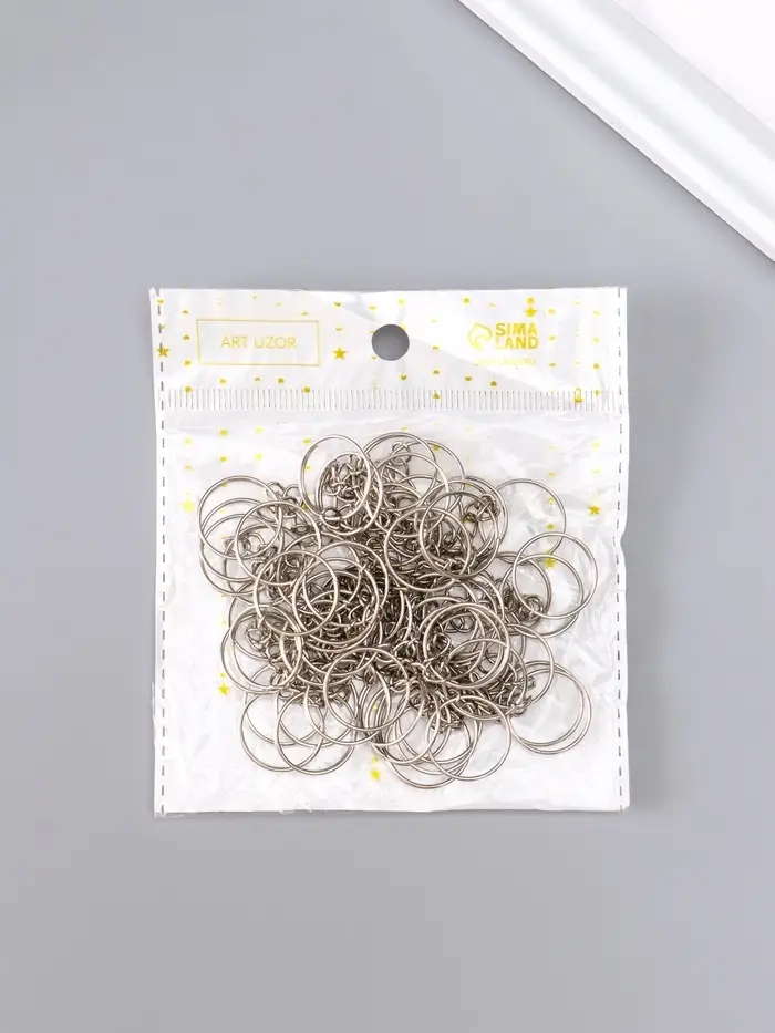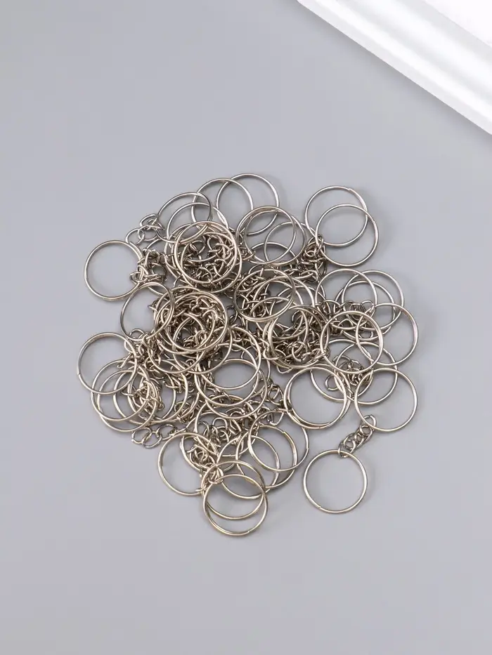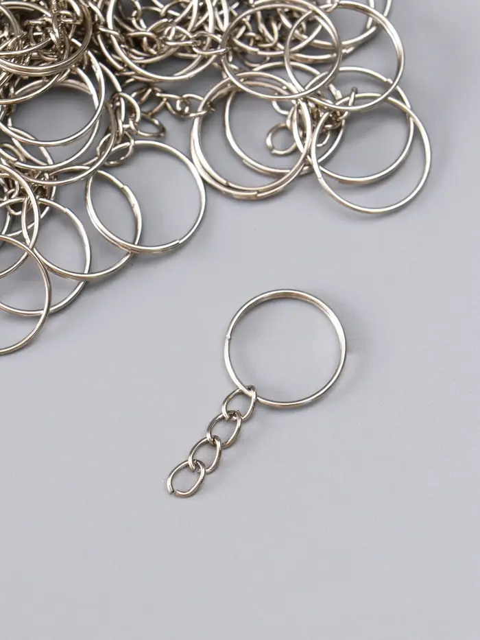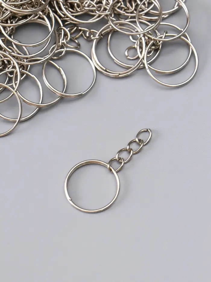 Основа для брелока кольцо металл с цепочкой, серебро d=1.8 см, для цепочки 1.8 см, набор 60 шт.