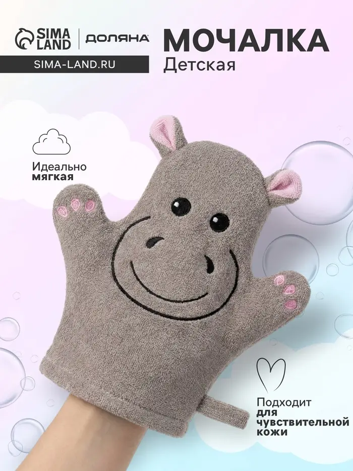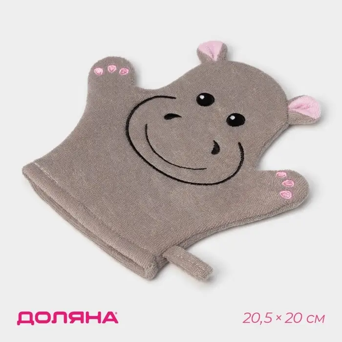 Мочалка варежка детская Доляна «Бегемотик», для купания, 21 см
