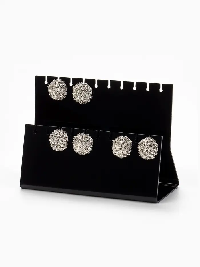 Эта подставка идеально подходит для хранения и презентации серёжек. Компактные размеры и два ряда делают её функциональным решением для магазинов ювелирных изделий и личного использования. Защитная плёнка предотвращает повреждения при транспортировке. Изделие из оргстекла обеспечивает прозрачность и эстетичный внешний вид.
