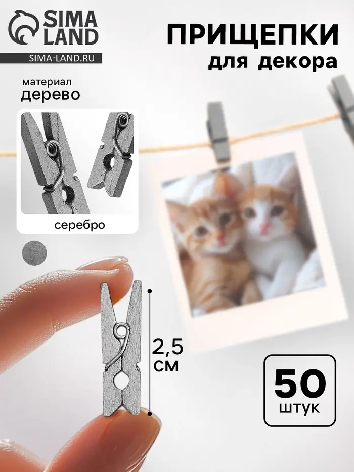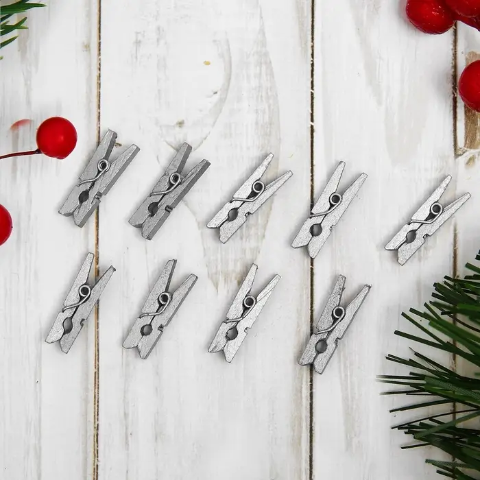 Прищепки для декора, серебро, 50 шт., размер: 2.5 см