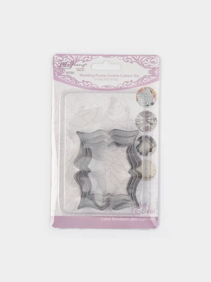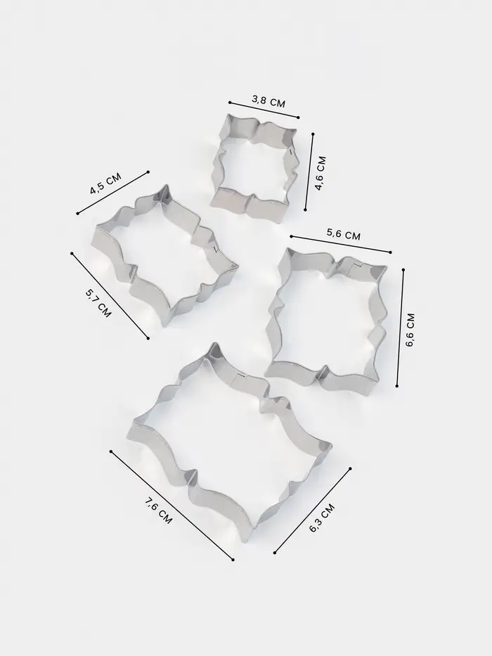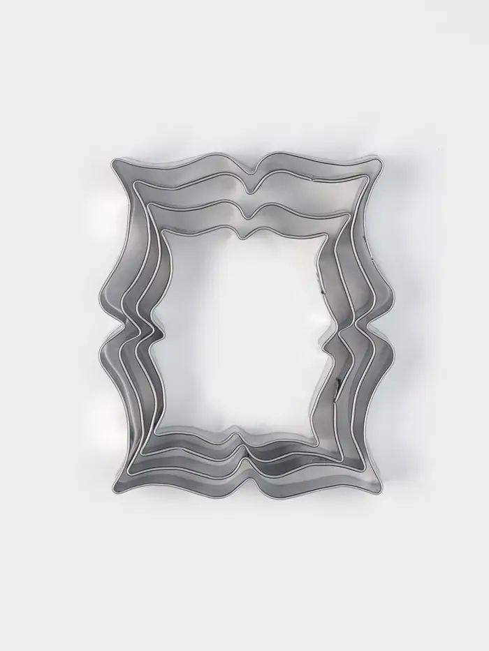 Набор форм «Рамка для пожелания» — элегантный способ превратить печенье в тёплое послание. Четыре прямоугольные вырубки из нержавеющей стали создают аккуратные рамки, внутрь которых легко поместить имя, дату или короткое пожелание глазурью. Серебристый металл подчёркивает чёткость линий и не отвлекает от главного — смысла.
