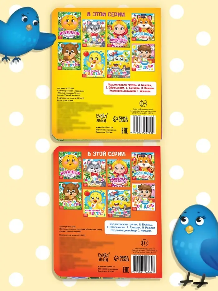 Книги картонные с глазками «Для малышей», набор 2 шт. по 10 стр.