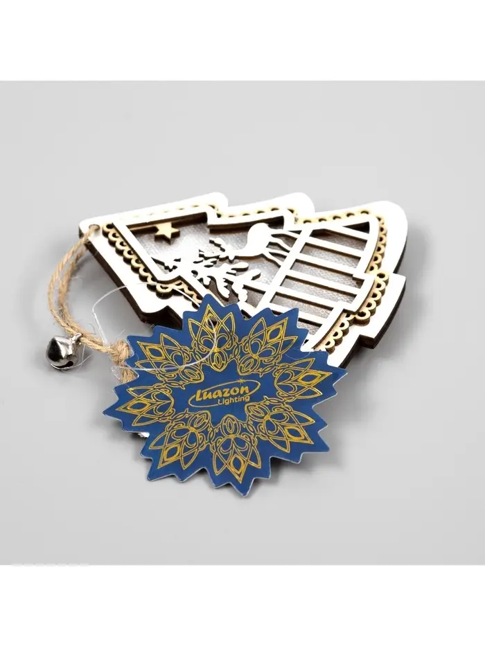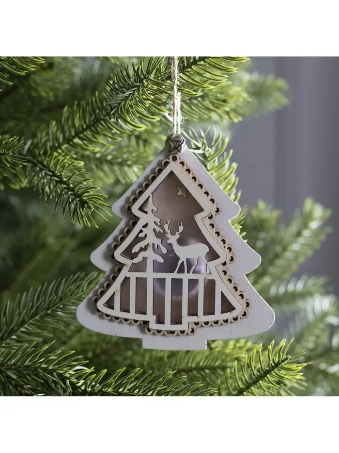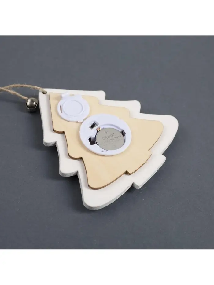 Ёлочная игрушка «Ёлочка с оленем», 10×10×2 см, 4 LED, от батареек, свечение тёплое белое