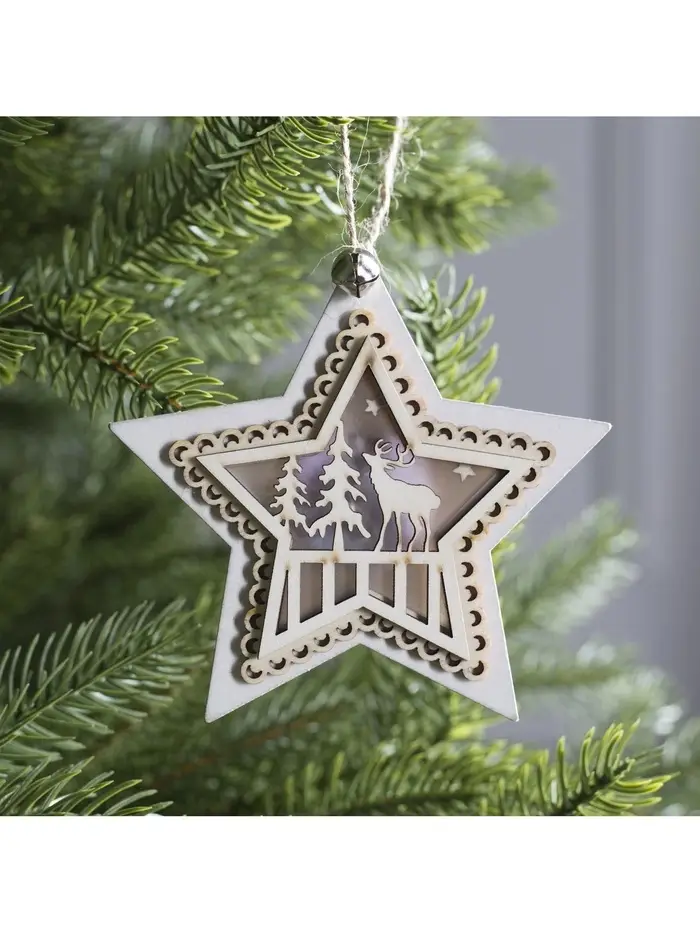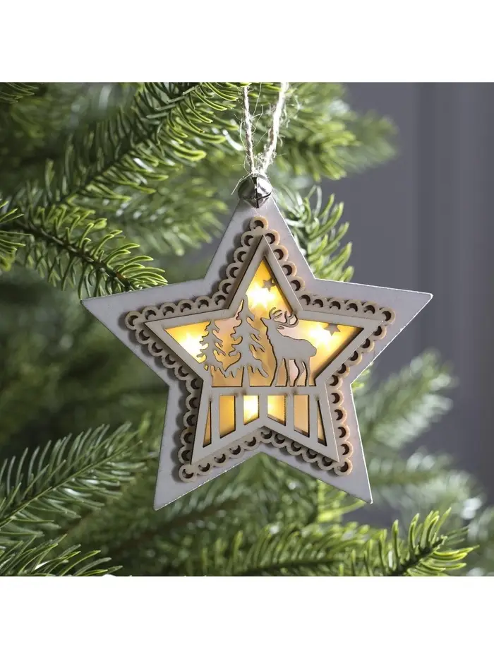 Ёлочная игрушка «Звезда с оленем», 10×10×2 см, 4 LED, от батареек, свечение тёплое белое