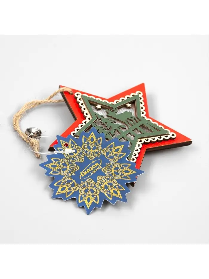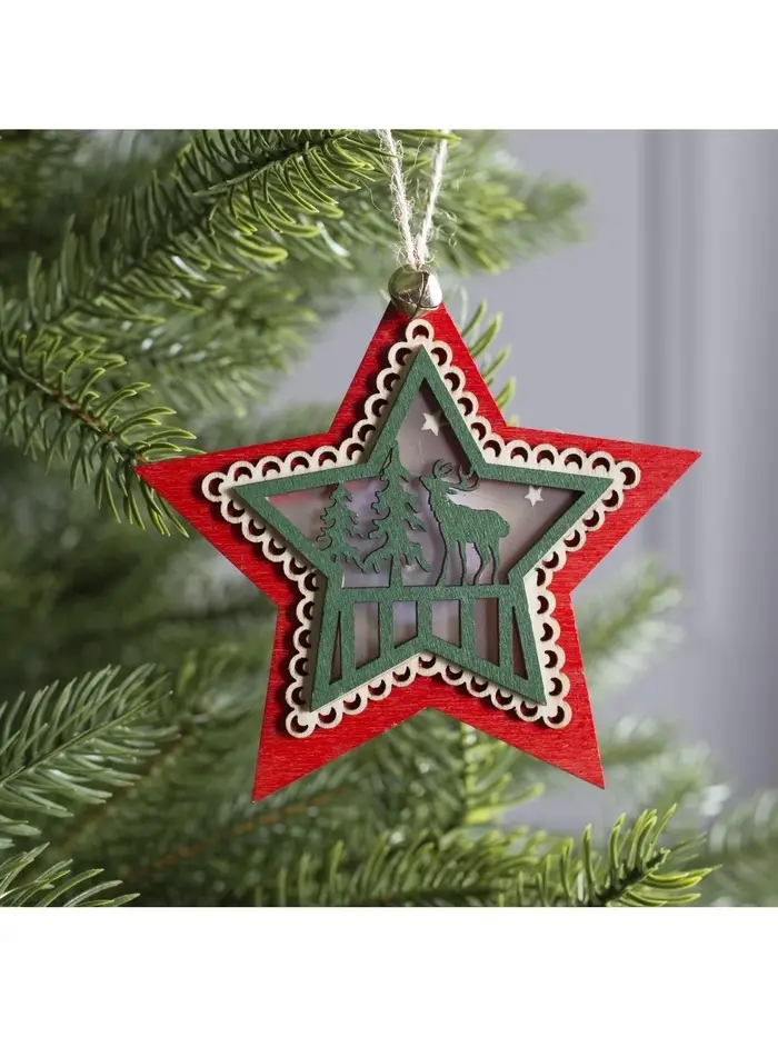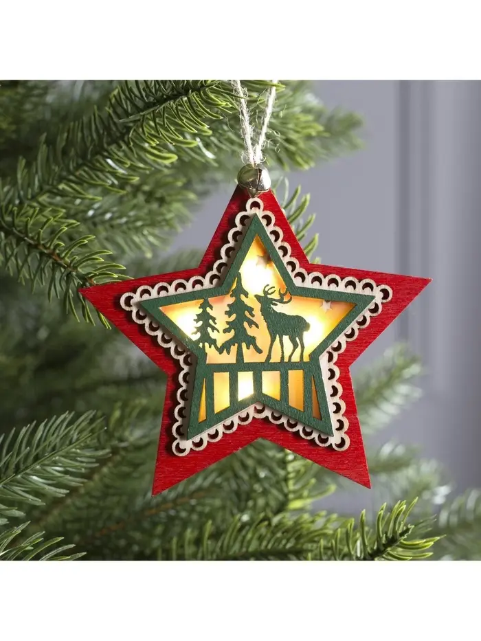Ёлочная игрушка «Красная звезда с оленем», 10×10×2 см, 4 LED, от батареек, свечение тёплое белое