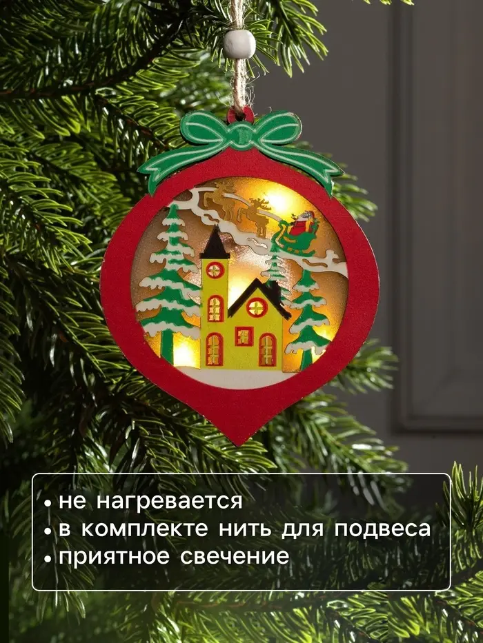 Знакомые на первый взгляд фигурки снабжены одним или несколькими светодиодами, что превращает их из привычных в сказочные. Полные света и нежного сияния игрушки работают от батареек, поэтому не ограничивайте свою фантазию – вешайте их куда угодно, даже на самые высокие ветки, их отовсюду будет видно! Изделие станет эффектным дополнением к гирлянде или даже оригинальной заменой ей. Игрушка ярко светится, потребляет совсем мало энергии и не нагревается.