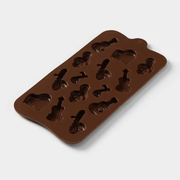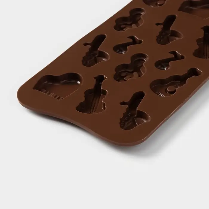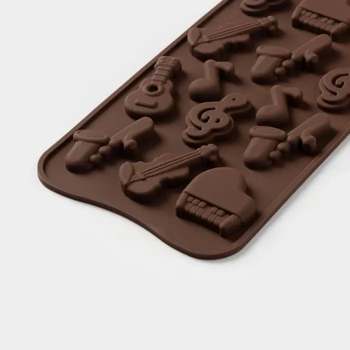 Форма для шоколада Доляна «Музыкальные инструменты», силикон, 21.5×10.5 см, 14 ячеек, коричневая