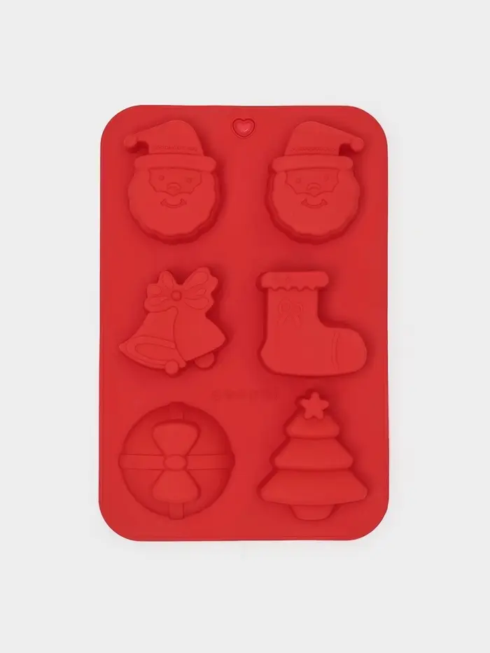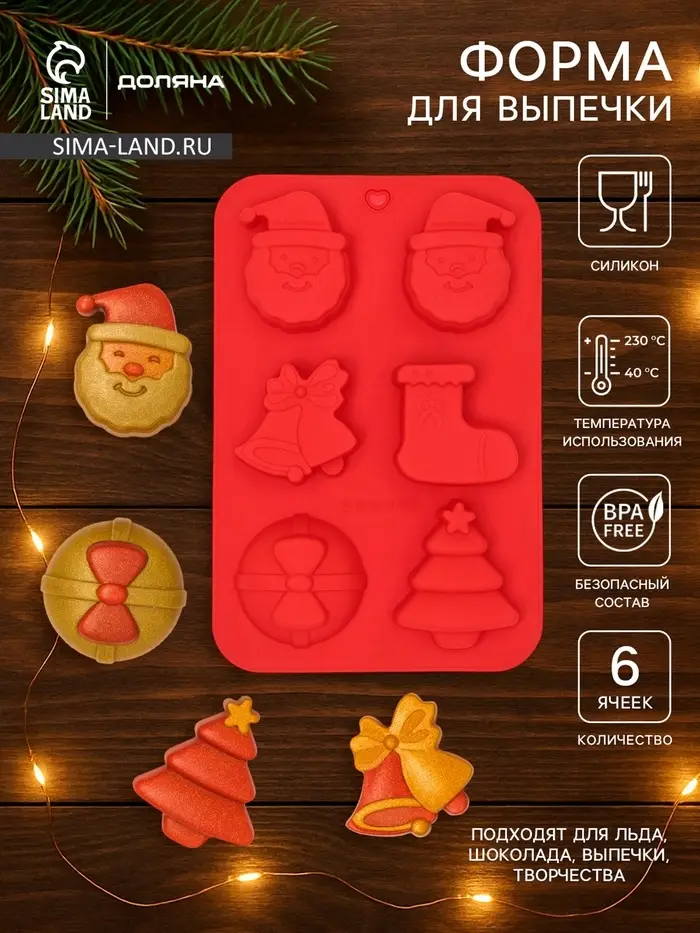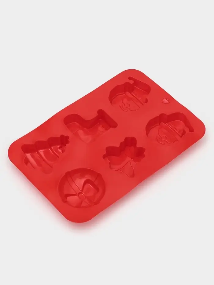 Форма для выпечки Доляна «Новый год. Праздник к нам приходит», силикон, 26×17.5 см, 6 ячеек, красная