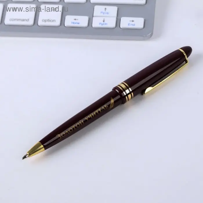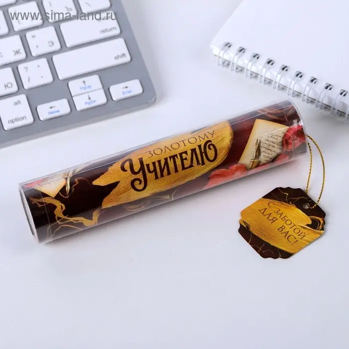 Ручка шариковая, синяя паста, 1 мм, пластик, автоматическая, в тубусе «Золотому учителю»