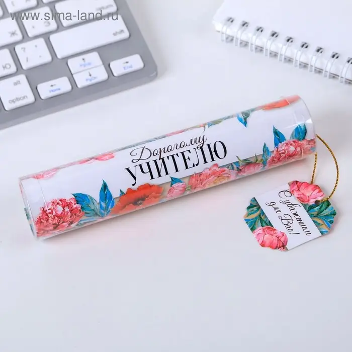 Ручка шариковая, синяя паста, 1 мм, пластик, автоматическая, в тубусе «Дорогому учителю!»
