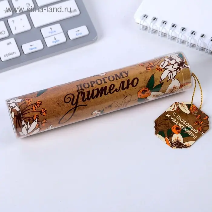 Ручка шариковая, синяя паста, 1 мм, пластик, автоматическая, в тубусе «Дорогому учителю!»