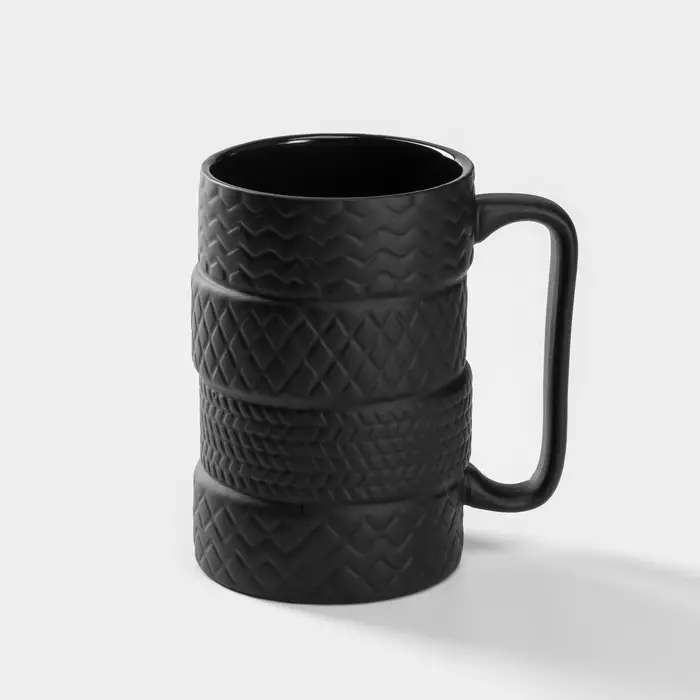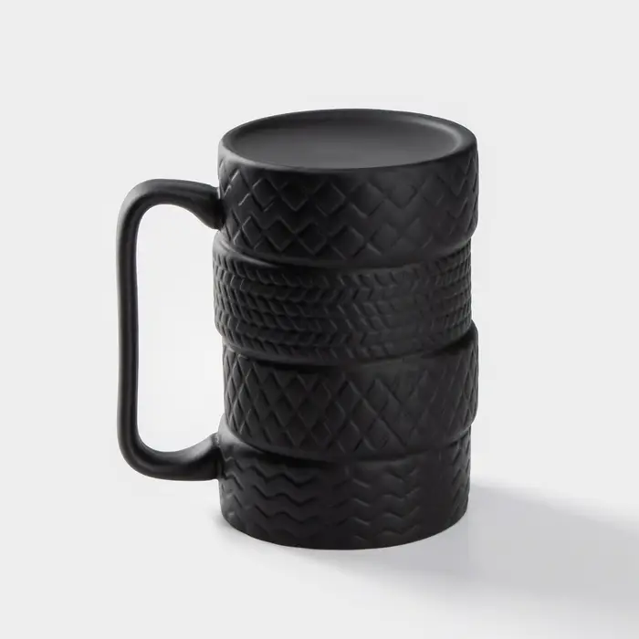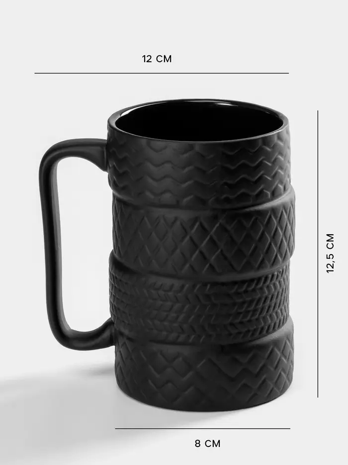 Кружка с рельефным дизайном шин станет практичным аксессуаром для ежедневного использования и оригинальным подарком по случаю профессиональных праздников. Черная керамика с матовой поверхностью подчеркивает строгость формы, а текстура в виде протектора добавляет индустриальный характер. Изделие сохраняет тепло, выдерживает микроволновую печь и посудомоечную машину, что делает его универсальным спутником в офисе или дома.