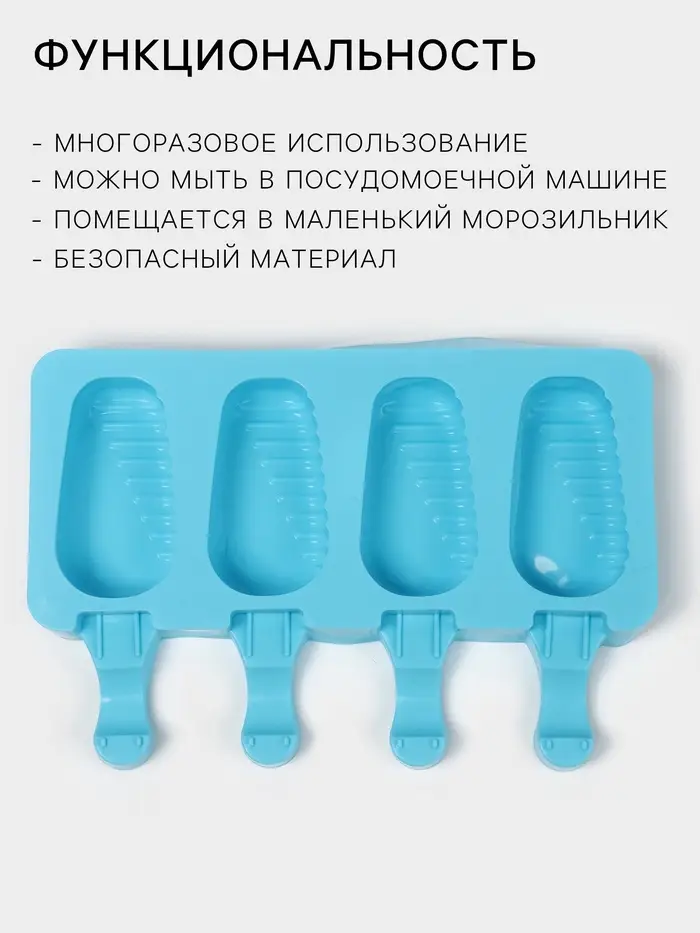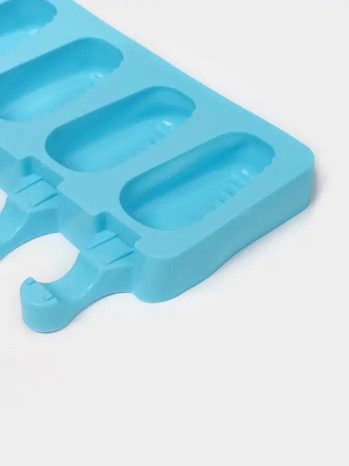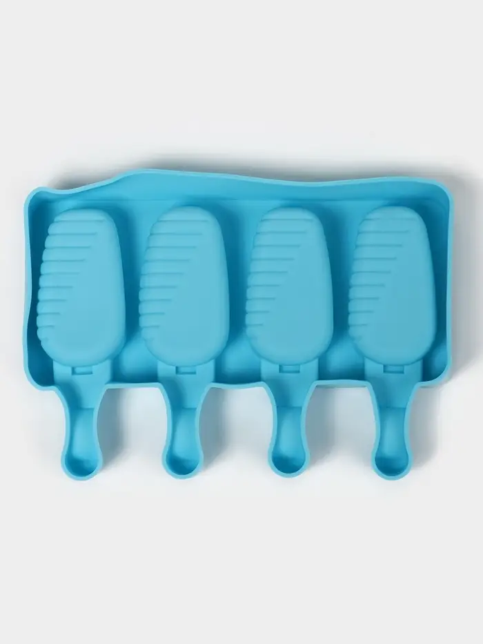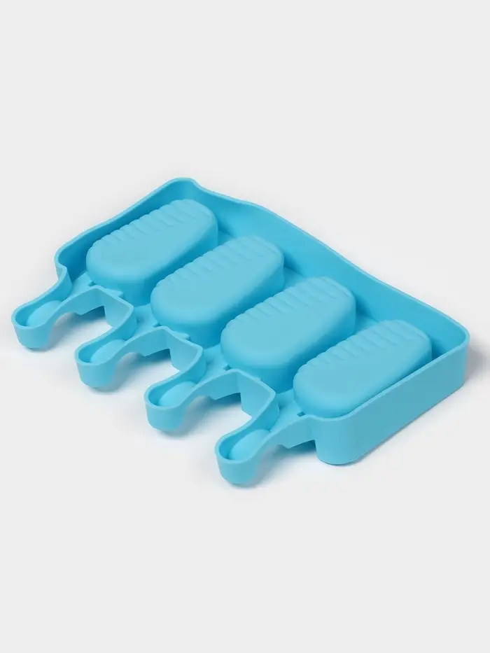 Форма для мороженого Доляна «Эскимо в глазури», силикон, 18.5×12.3×2.5 см, 4 ячейки, синяя