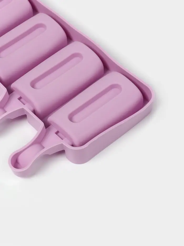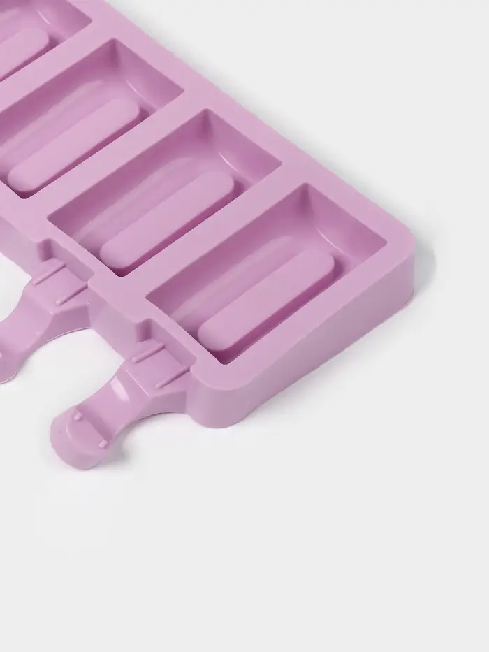 Форма «Эскимо» возвращает к простым радостям: белый силиконовый лоток с четырьмя прямоугольными ячейками напоминает классический батончик без палочки. Заливка из йогурта или фруктового пюре застывает ровным слоем, а при извлечении десерт выскальзывает одним движением — без усилий, без остатка. Домашнее мороженое становится не угощением «на скорую руку», а маленьким ритуалом: выбрать свою порцию, разглядеть гладкую поверхность, улыбнуться первому укусу.