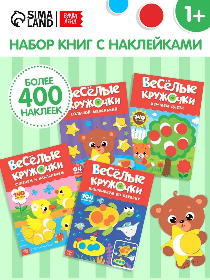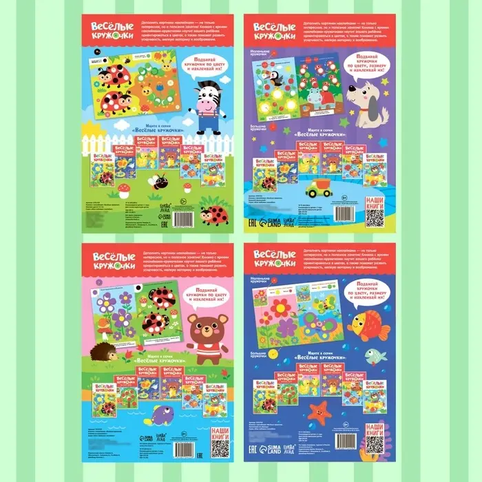Наклейки обучающие «Весёлые кружочки», набор 4 шт. по 16 стр., А4