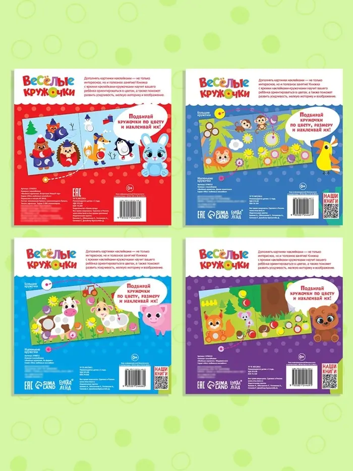 Наклейки обучающие «Весёлые кружочки», набор 4 шт. по 16 стр., А4