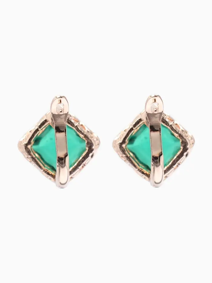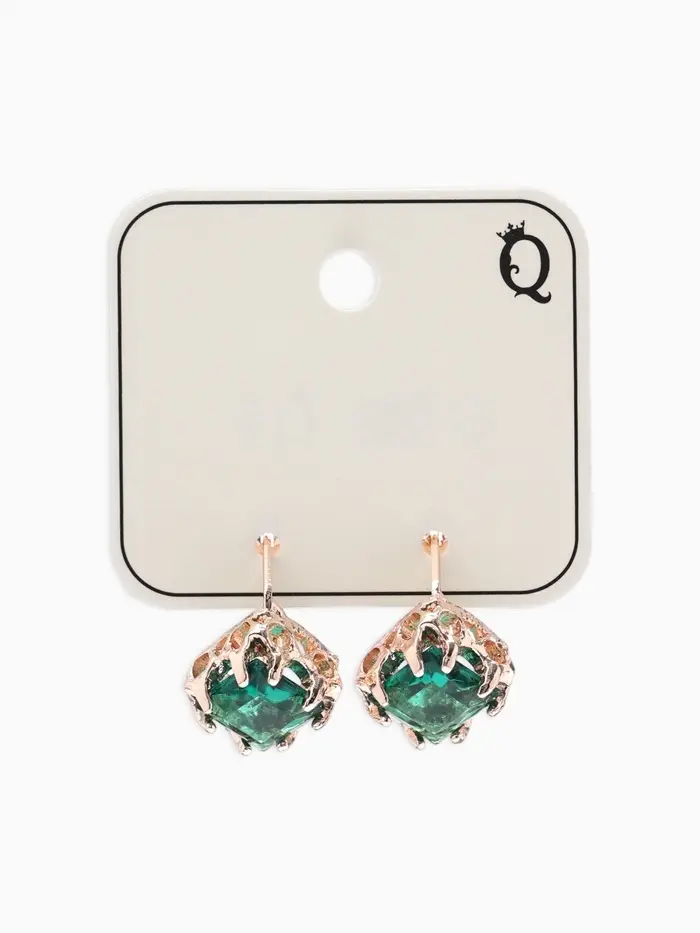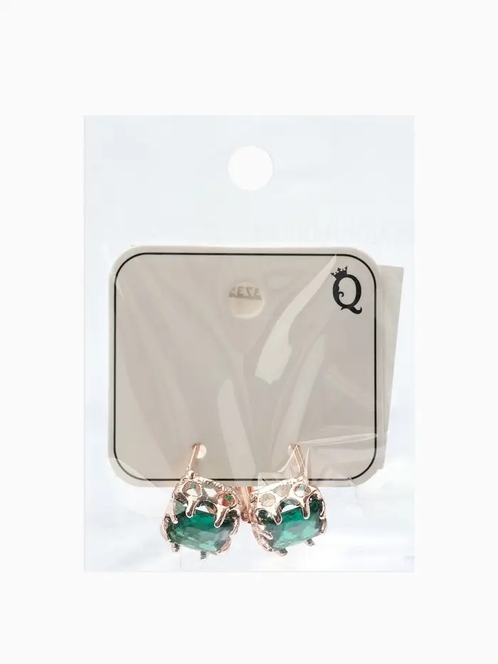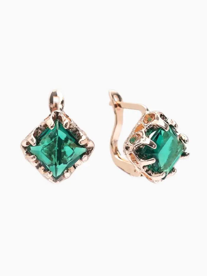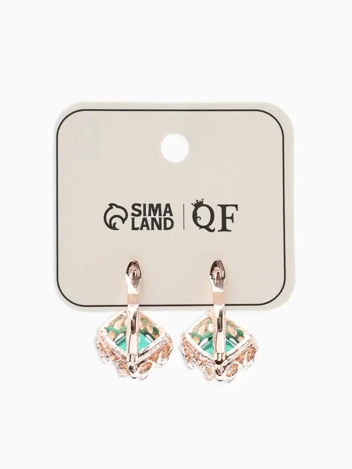 Серьги со стразами «Эдель», ромб, зелёные в розовом золоте