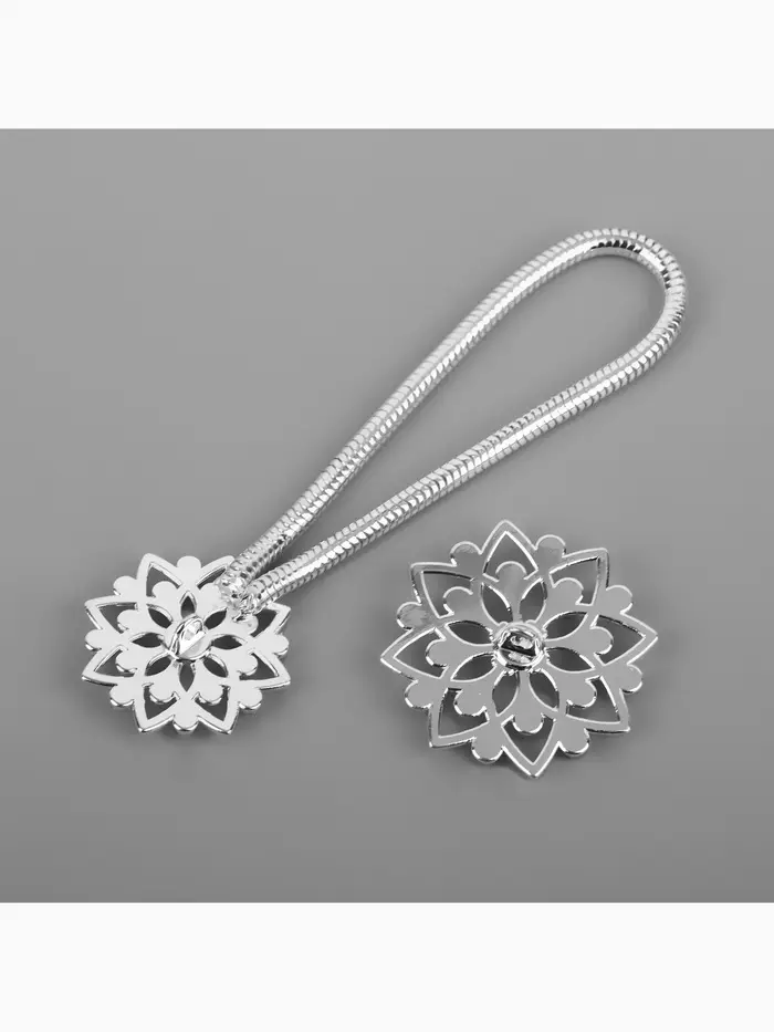 Эта декоративная застёжка — финальный акцент, превращающий вашу работу из просто готовой в законченную. Серебристый отблеск добавляет проекту сдержанный блеск и ощущение мастерства. Идеальный выбор для тех, кто ценит в деталях чистоту линий и надёжность.