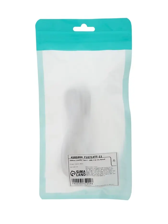 Кабель Luazon, Type-C - USB, 1 А, 1 м, белый