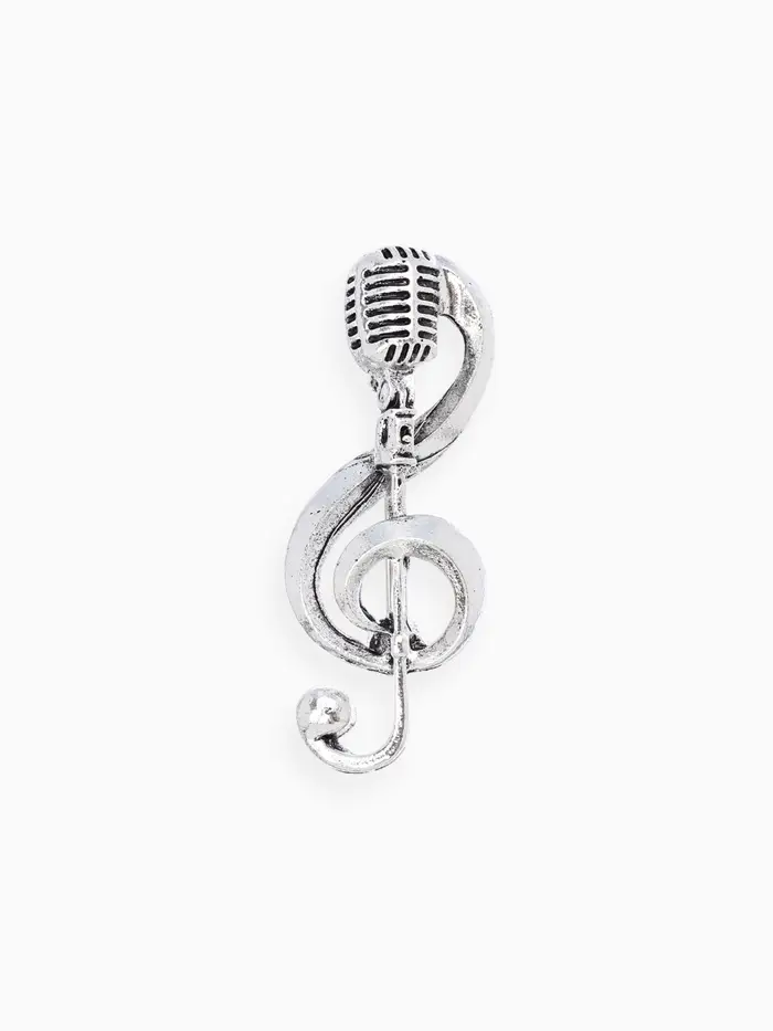 Серебристая брошь в виде ретро микрофона с музыкальной нотой подчеркнёт индивидуальность и привнесёт нотку творчества в любой образ. Компактный размер 4,1 см делает её универсальным аксессуаром для повседневного ношения и профессиональных событий, а чёрнёное серебро придаёт изделию глубину и особый характер.