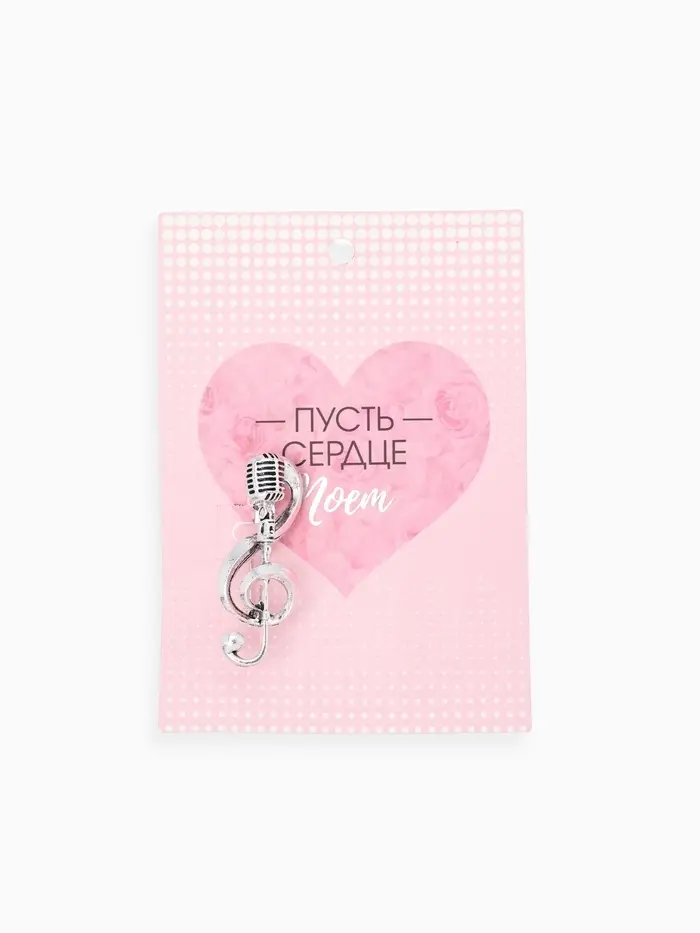 Брошь «Ретро микрофон с нотой», цвет серебро