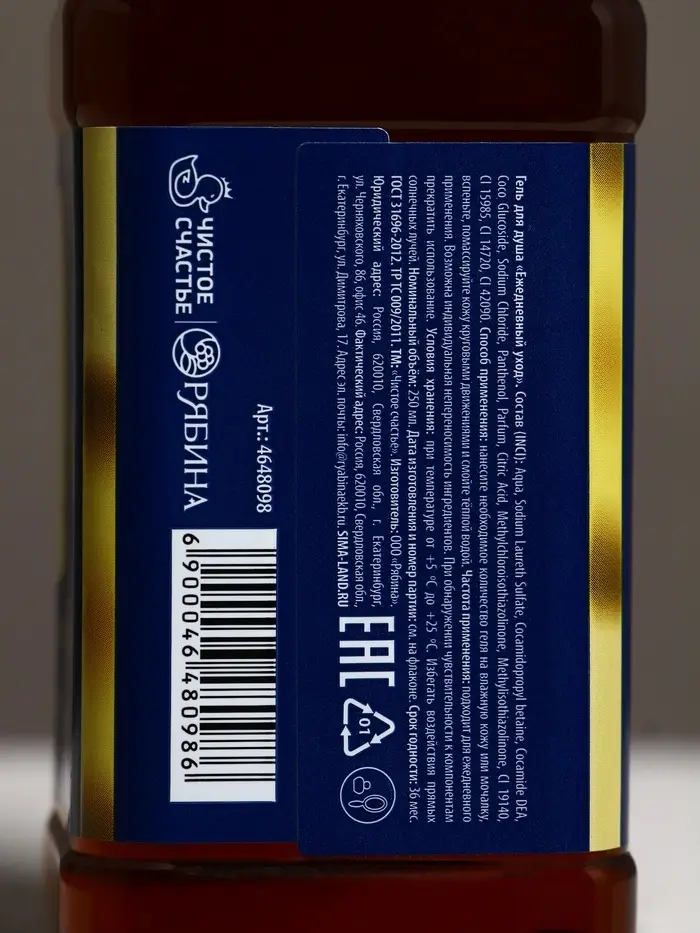 Гель для душа ЧИСТОЕ СЧАСТЬЕ, 500 мл, аромат яблочного пирога, Новый Год