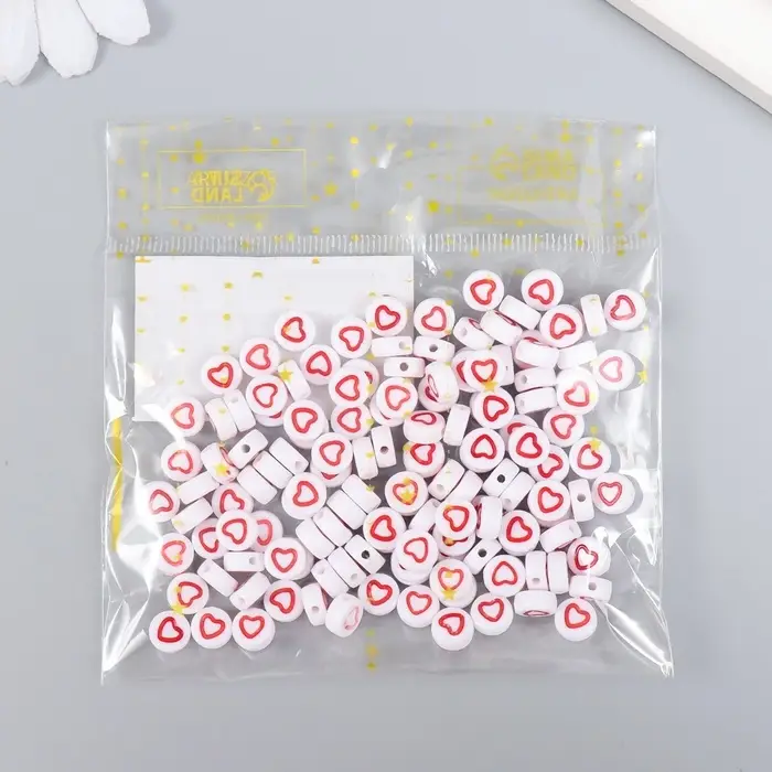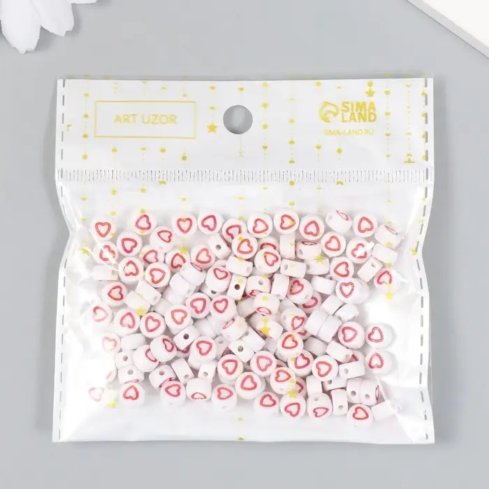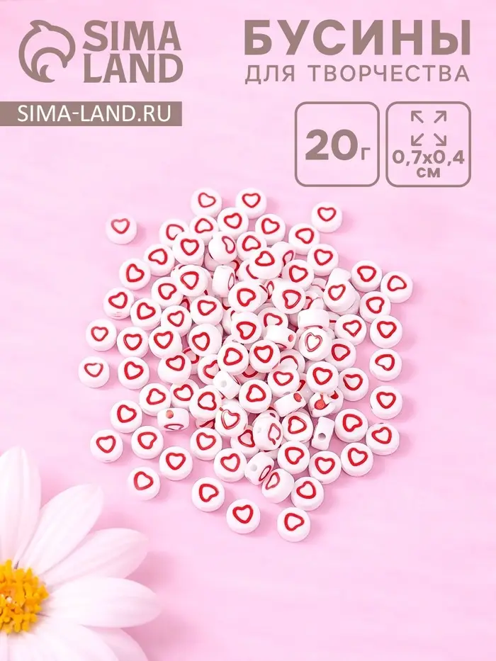 Набор бусин для рукоделия и плетения «Арт Узор. Красное сердце с белой серединкой», 20 г, пластик, 0.7×0.7×0.4 см