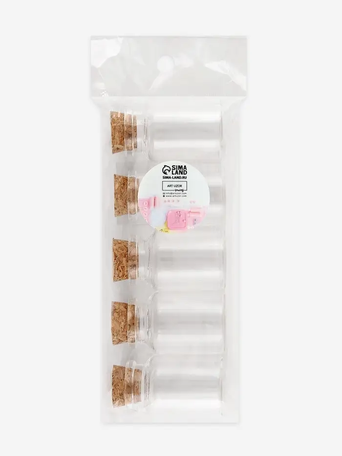Баночки для хранения бисера, с пробкой, d=2.2×6 см, 5 шт.