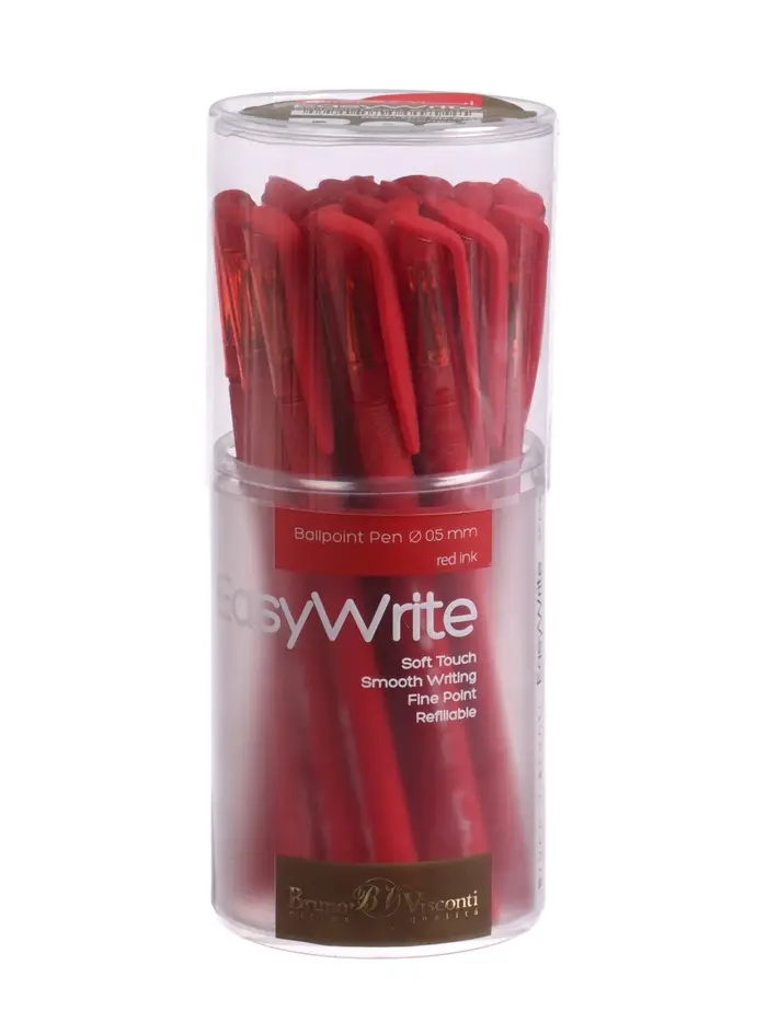 Ручка шариковая BrunoVisconti. EasyWrite. Red, красный стержень, узел 0.5 мм, резиновый упор, матовый корпус