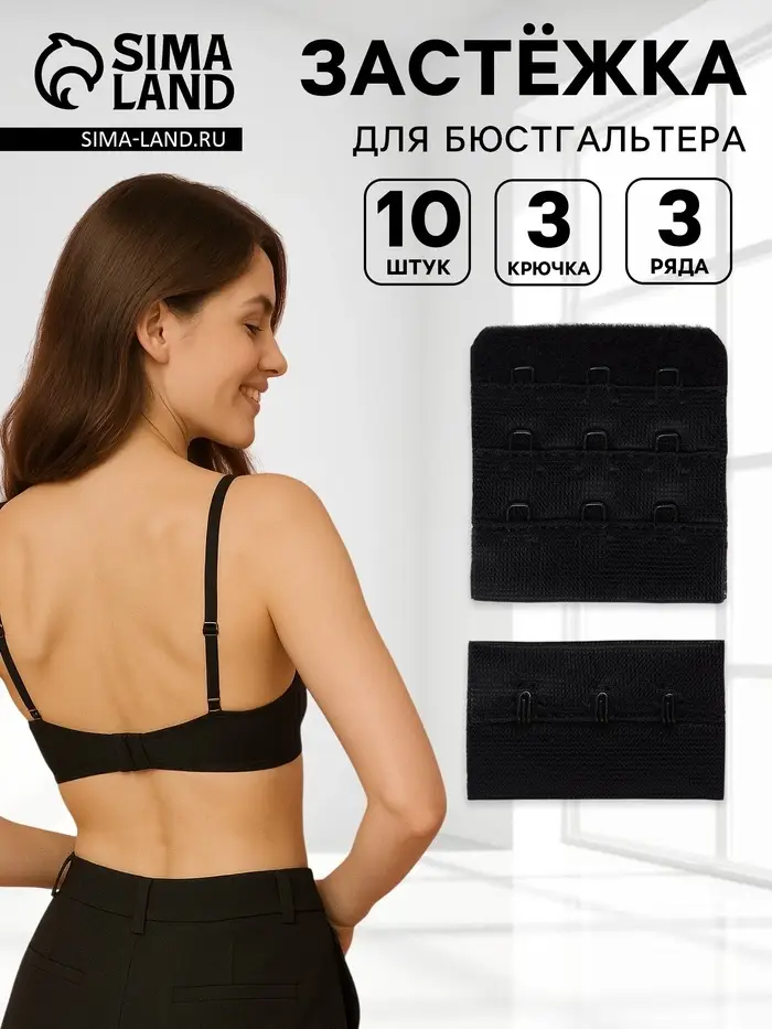 Застёжка для бюстгальтера, 3 ряда 3 крючка, 10 шт., чёрная