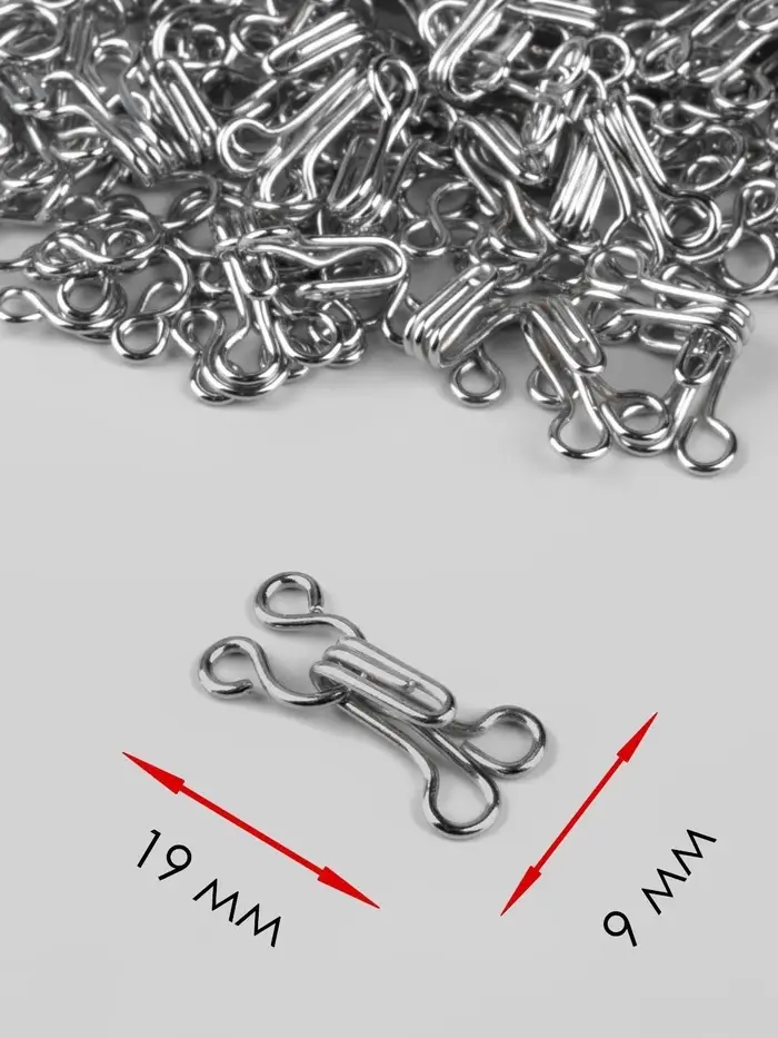 Крючок пришивной №3, 19×9 мм, 100 шт., цвет серебряный