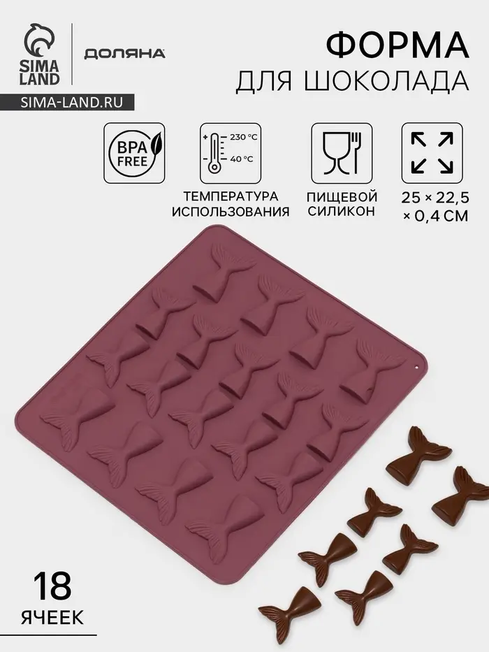 Форма для шоколада Доляна «Хвост», силикон, 25×22.5×0.4 см, 18 ячеек (5.3×4 см), МИКС
