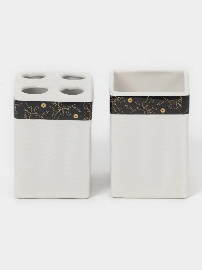 Аксессуары для ванной «Золотой лист», 4 предмета: дозатор 250 мл, мыльница, 2 стакана, белые
