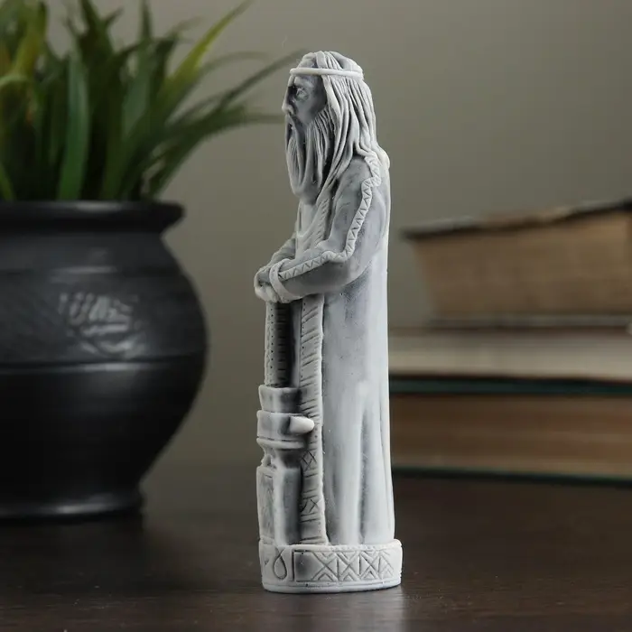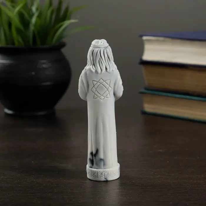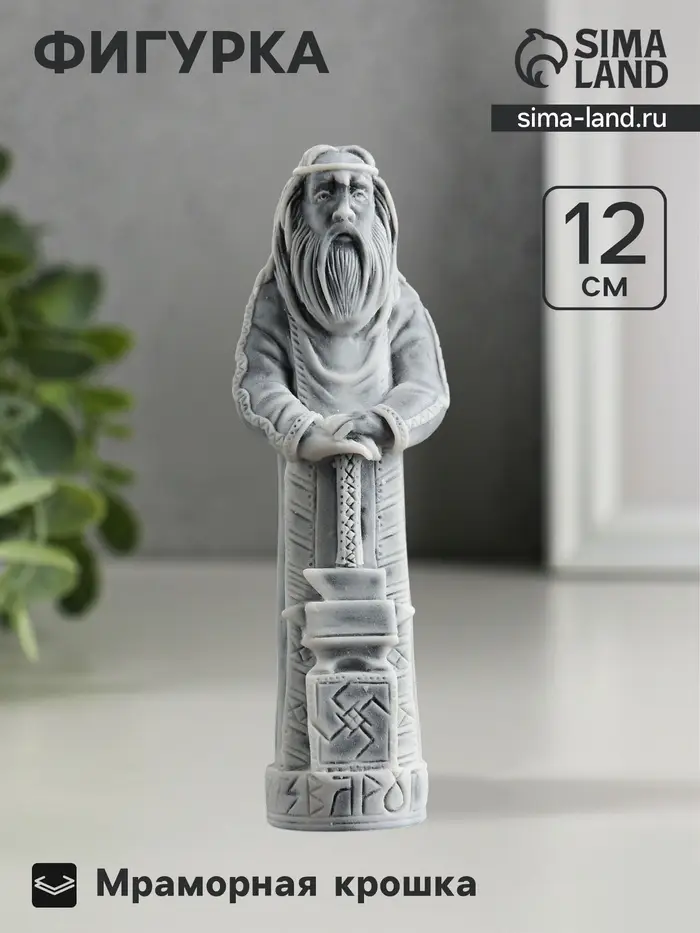 Статуэтка из мраморной крошки высотой 12 см станет уникальным акцентом в интерьере или осмысленным подарком для ценителей славянской культуры. Её серый цвет и текстура подчёркивают естественную красоту материала, а образ «Сварога» добавляет глубину символического значения. Такая вещь украсит рабочий стол, книжную полку или станет центральным элементом коллекции.