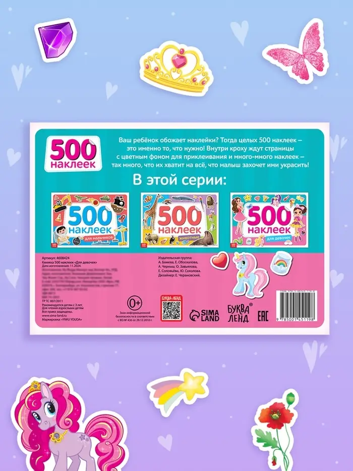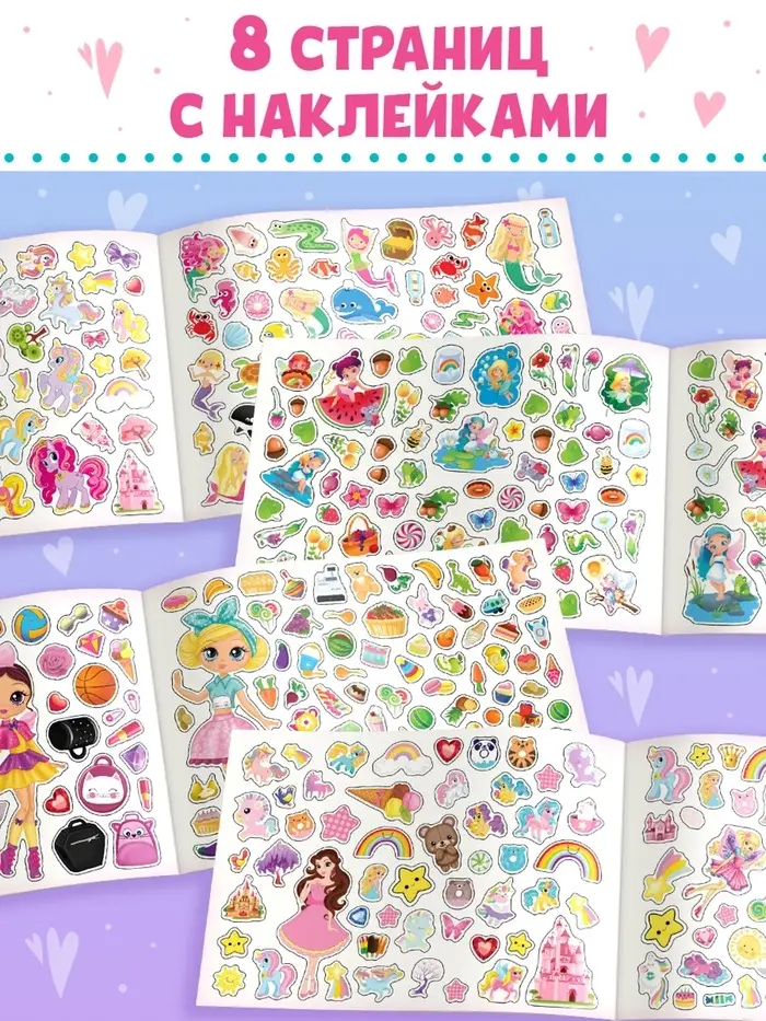 Книжка 500 наклеек «Для девочек», 8 стр.