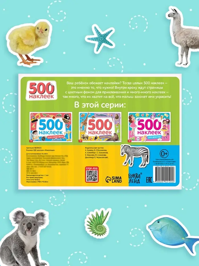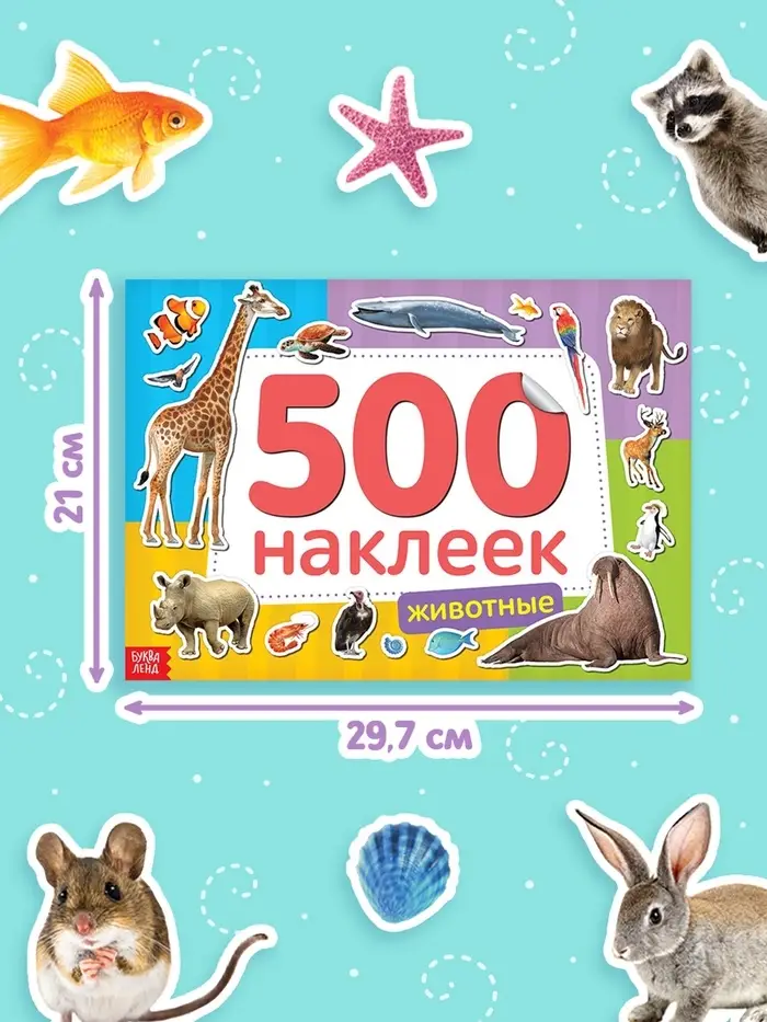 Книжка 500 наклеек «Животные», 8 стр.