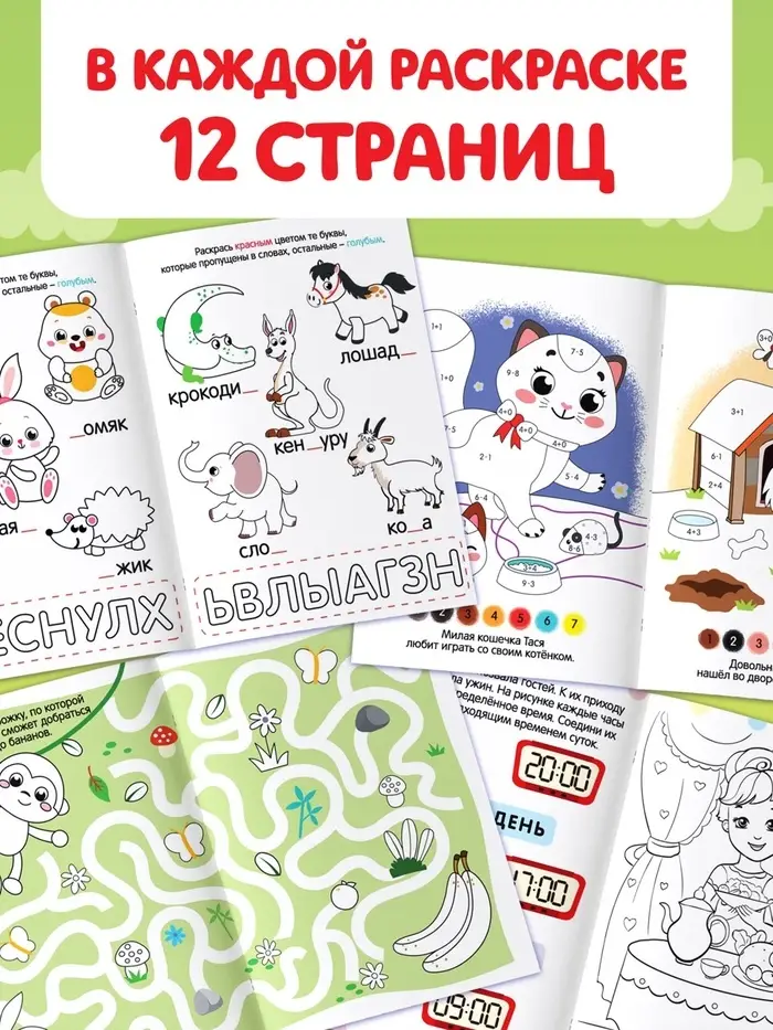 Раскраски «Весёлые задания», набор 8 шт. по 12 стр.