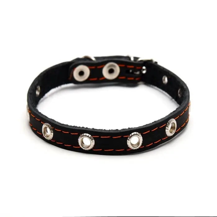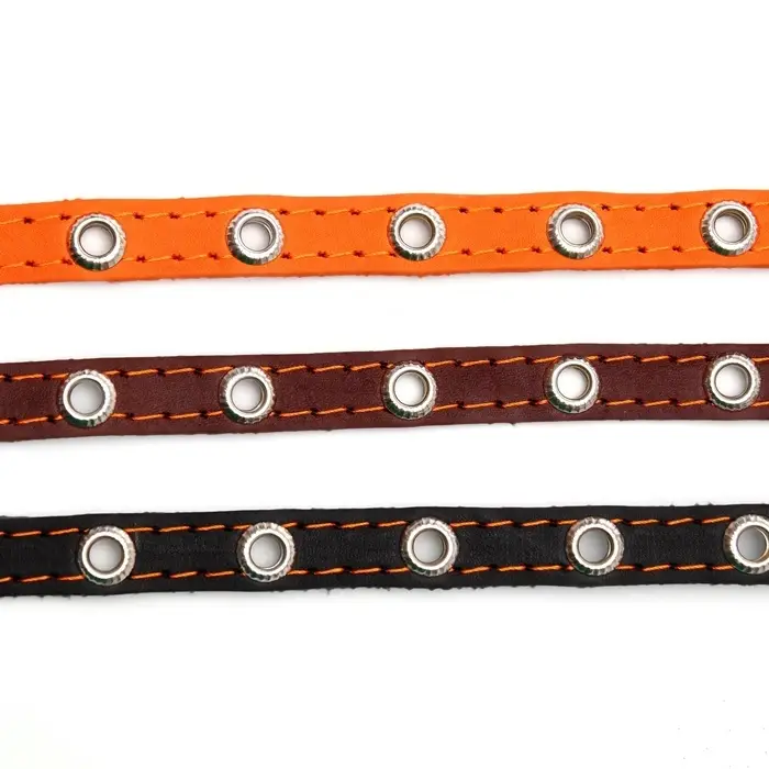 Ошейник кожаный однослойный с рифлеными люверсами, 35×1.2 см, ОШ 10-28 см, безразмерный, микс цветов