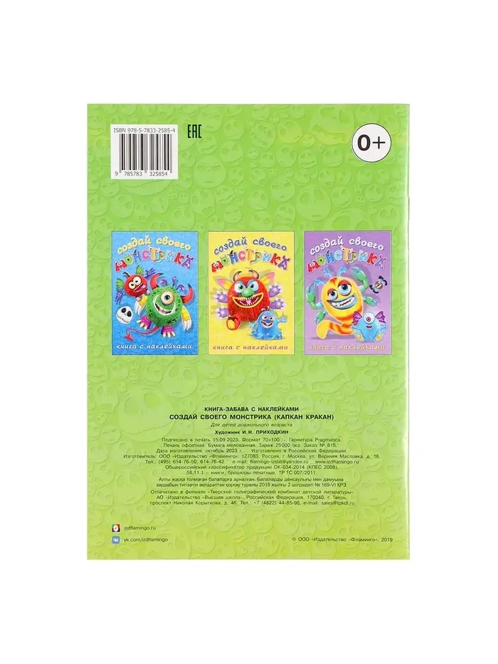 - 2 страницы с красочными наклейками, которые помогут создать уникальных монстриков на готовых шаблонах.