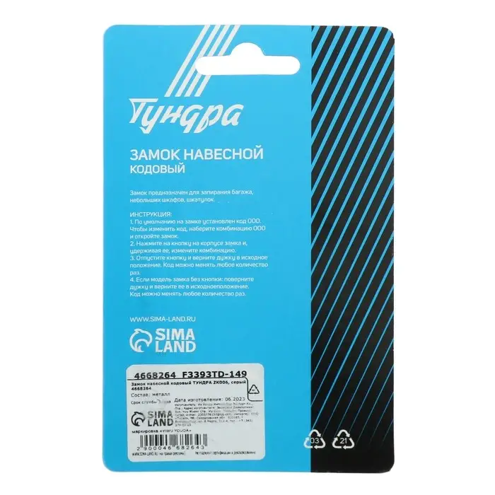 Замок навесной кодовый TUNDRA общего назначения с кодовым механизмом выполнен из высококачественного металла.