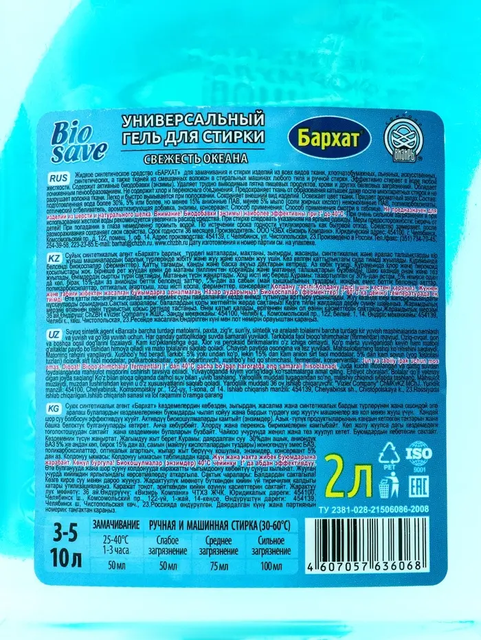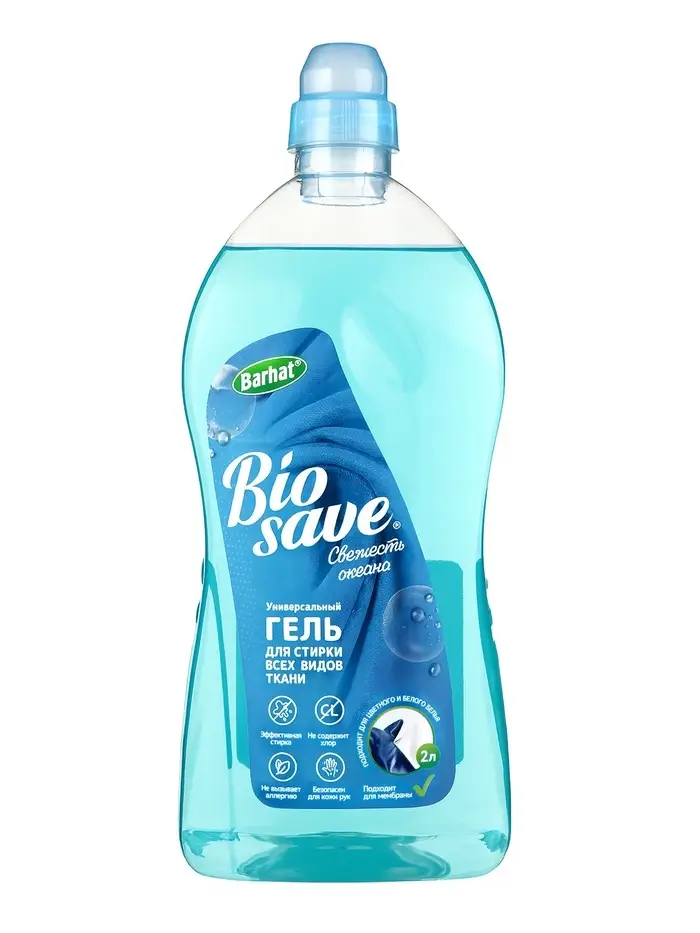 Жидкое средство для стирки Barhat Biosave «Свежесть океана», гель, универсальное, 2 л