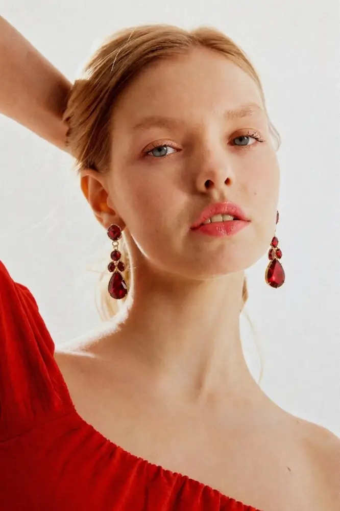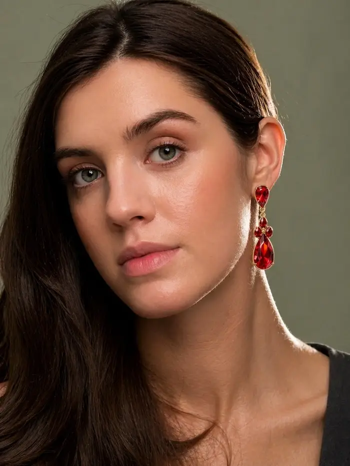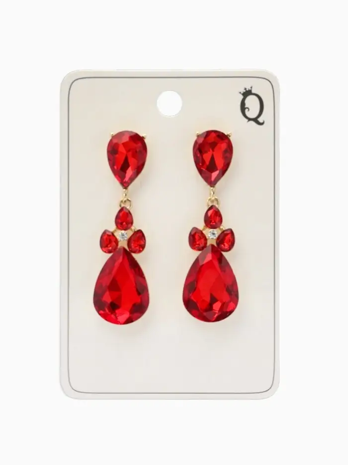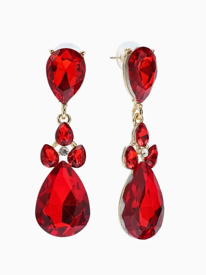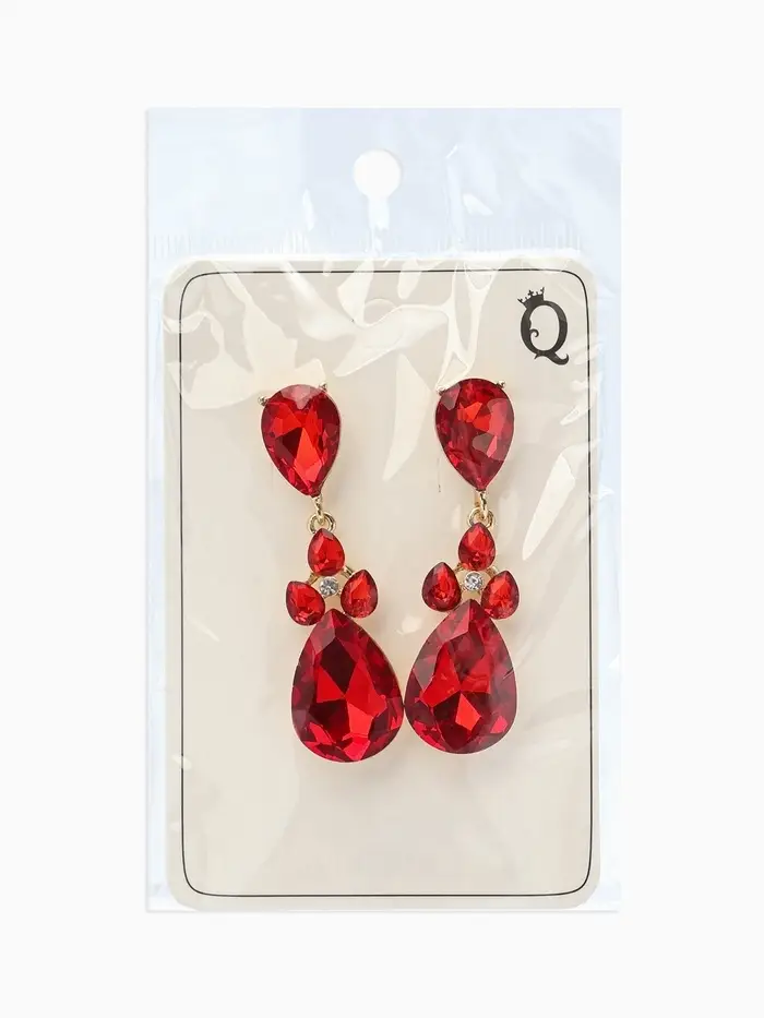 Серьги висячие со стразами «Вечеринка», цветок из капель, красно-белые в золоте, 6.3 см