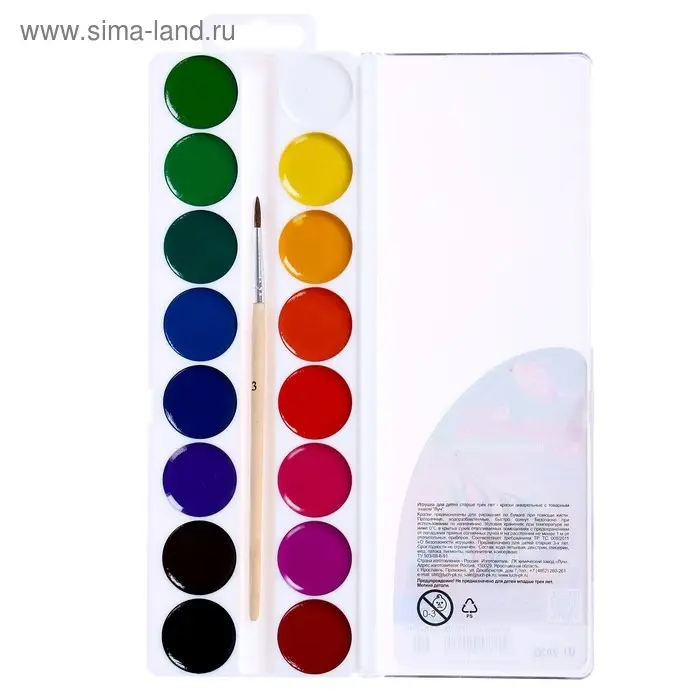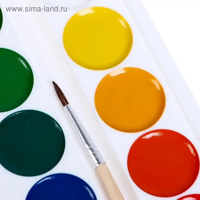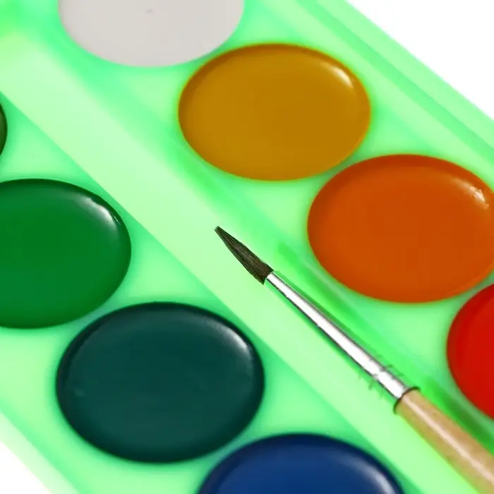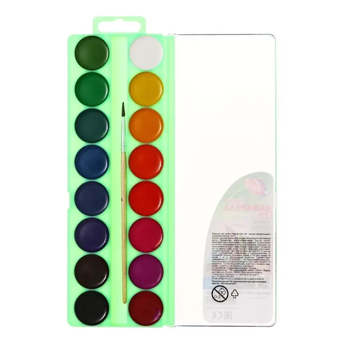 Краски акварельные, в кюветах, с кистью, 12 цветов