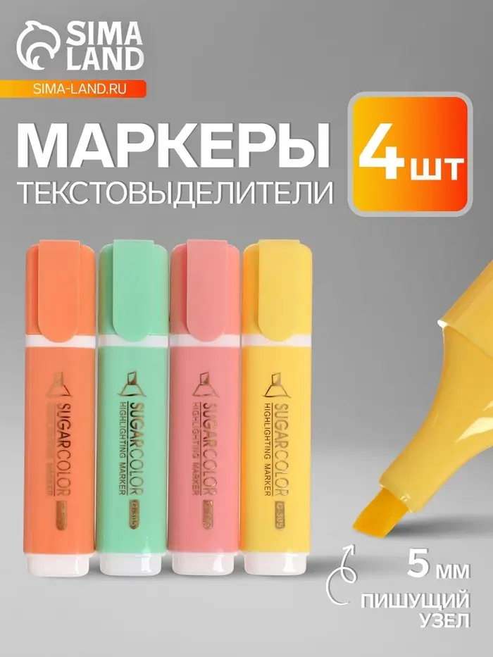 Набор маркеров-текстовыделителей, 4 цвета, скошенный наконечник, узел 5 мм
